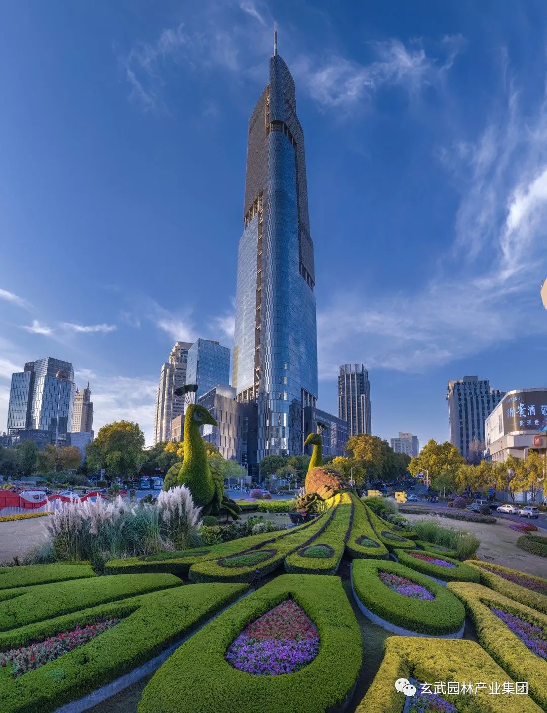 主題綠雕“歡樂祥和”在充分考慮鼓樓廣場(chǎng)樞紐交通功能和周邊建筑景觀融合基礎(chǔ)上,把握“寓意鮮明”、“綠色生態(tài)”的原則,選定孔雀作為綠雕形象主題,寓意著南京歡樂祥和、國(guó)泰民安、和諧美好的都市面貌。